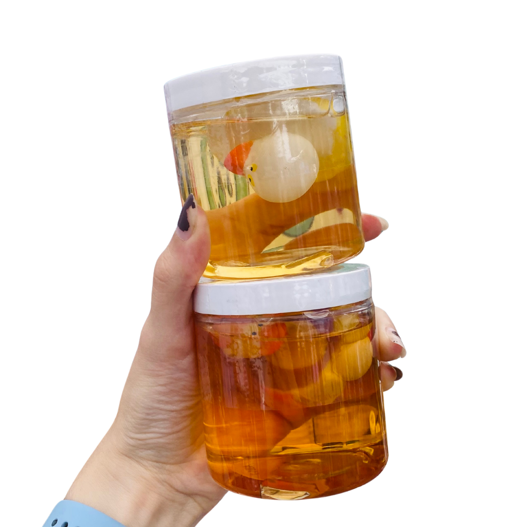 Each jar of body wash contains at least 7oz of liquid heaven. Each slime has a themed toy inside for more bath time fun!