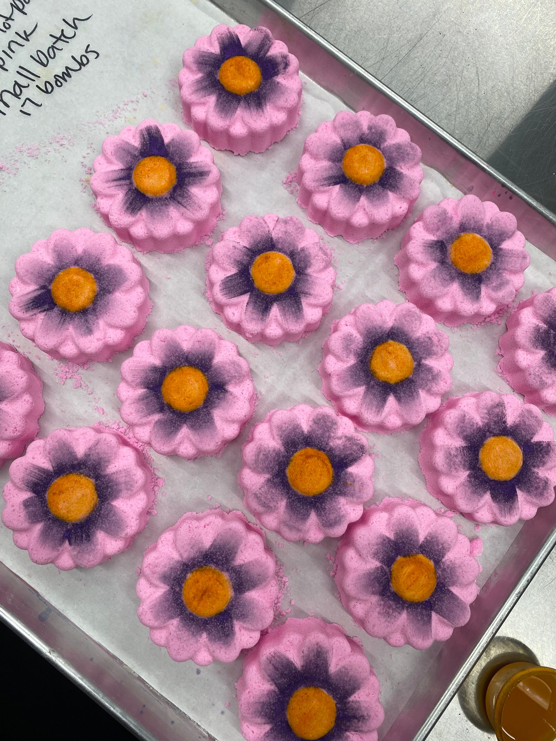 Our products are made with top of the line, ethically sourced ingredients, all by hand. Formulated for sensitive skin, our bath bombs are made only with natural, gentle ingredients - no harsh chemicals or abrasive foaming agents. Your skin will thank you!