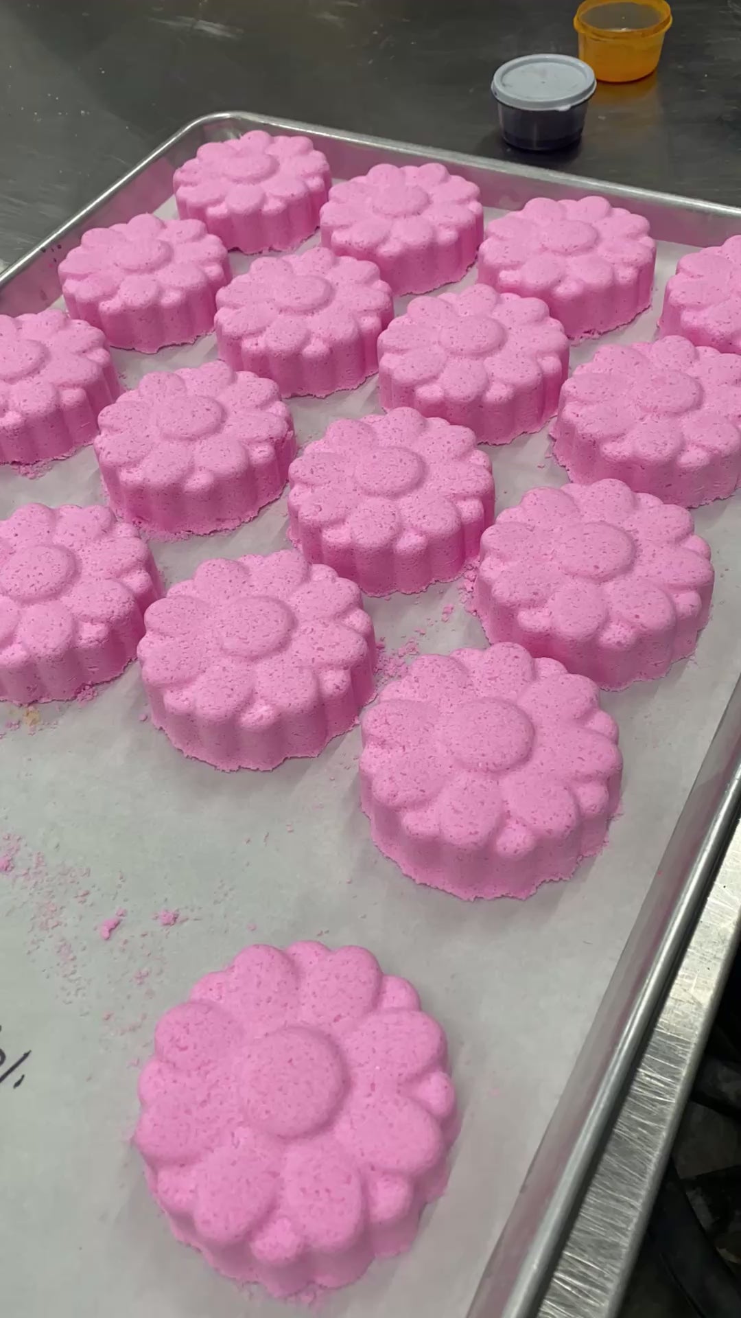 Ingredients: Baking soda, citric acid, Epsom salt, cornstarch, sunflower oil, fragrance oil, water, powder colorant, rubbing alcohol (to paint - evaporates after)