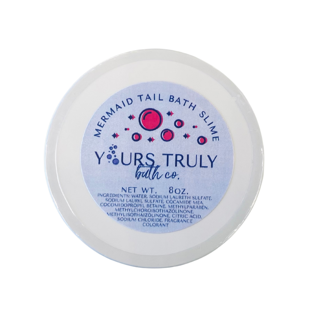 Bath slime is a bubble bath and body wash duo. Simply pour a small amount under running water for a large bubble bath or take out what you'd like to rub on your skin as a body wash.
