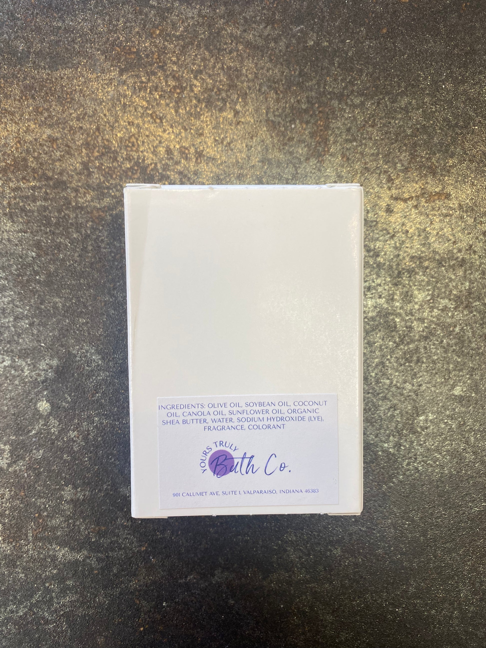 Ingredients: Olive Oil, Soybean Oil, Coconut Oil, Corn Oil, Sunflower Oil, Organic Shea Butter, Water, Sodium Hydroxide (Lye), Fragrance