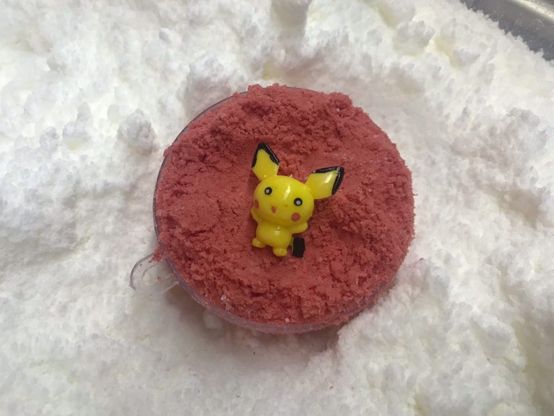 Every poke-bomb bath bomb contains a Pokemon toy! The type, generation, and game the character is from is a complete surprise! BE CAREFUL with small children, as there is a choking hazard, especially those under 4 years old. Use with caution. Some of the monkey figures you can get in your bath bomb are shown in the first image.