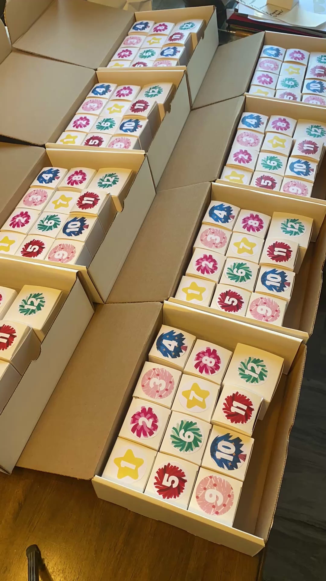 Each handmade and hand wrapped box includes 12 different, exclusive products. Each days is a surprise filled with bath bombs, bath slime, bubble bath and so much more!