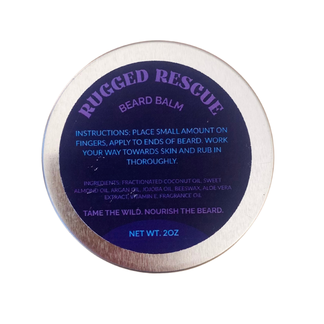 Beard Balm: Fractionated Coconut Oil, Sweet Almond Oil, Argan Oil, Jojoba Oil, Beeswax, Aloe Extract, Vitamin E, Fragrance Oil