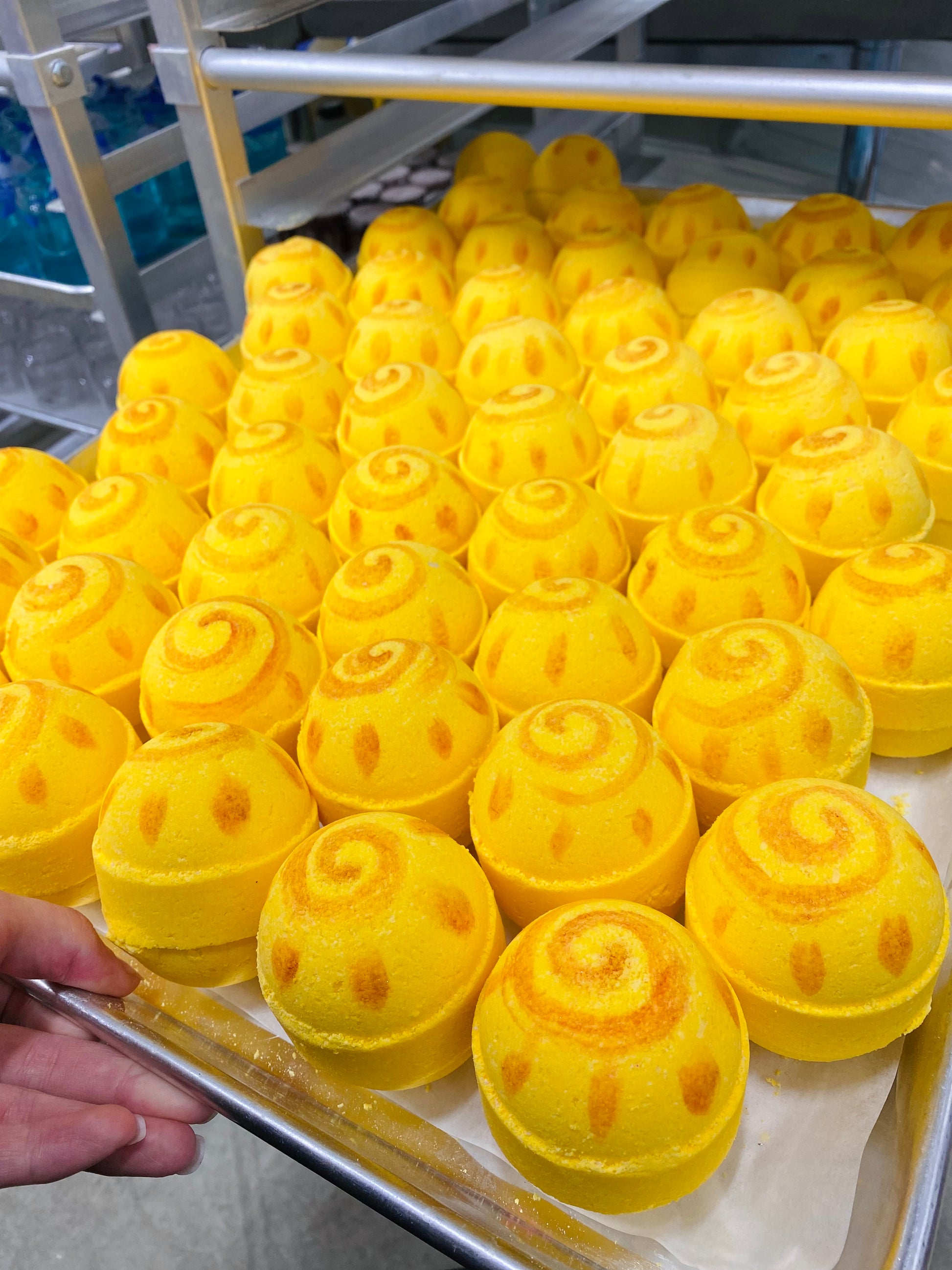 Ingredients: Baking soda, citric acid, Epsom salt, cornstarch, sunflower oil, fragrance oil, water, powder colorant