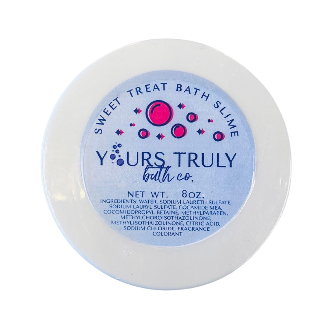 Bath slime is a bubble bath and body wash duo. Simply pour a small amount under running water for a large bubble bath or take out what you'd like to rub on your skin as a body wash.