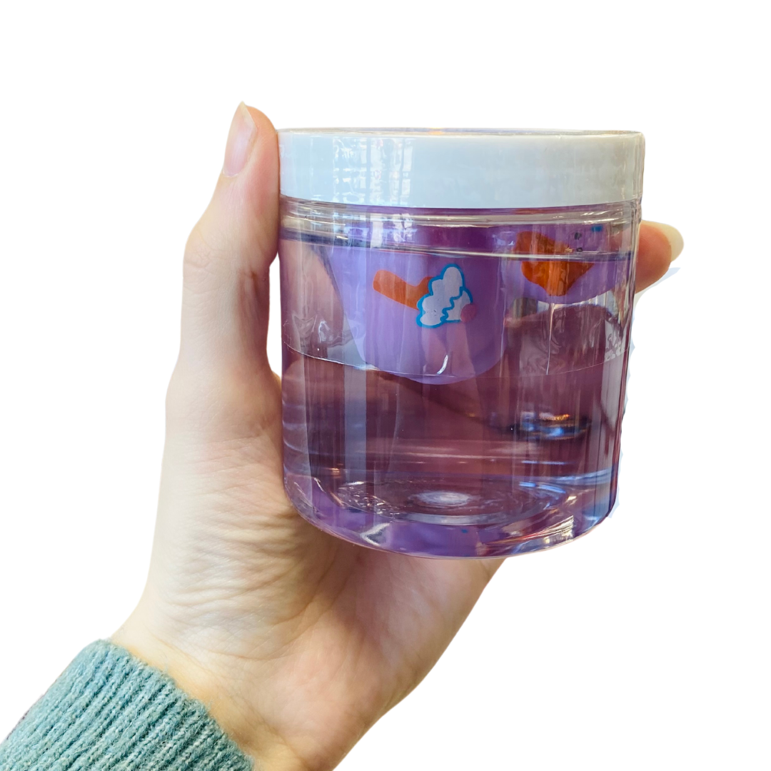 Each jar of body wash contains at least 7oz of liquid heaven. Each slime has a themed toy inside for more bath time fun!